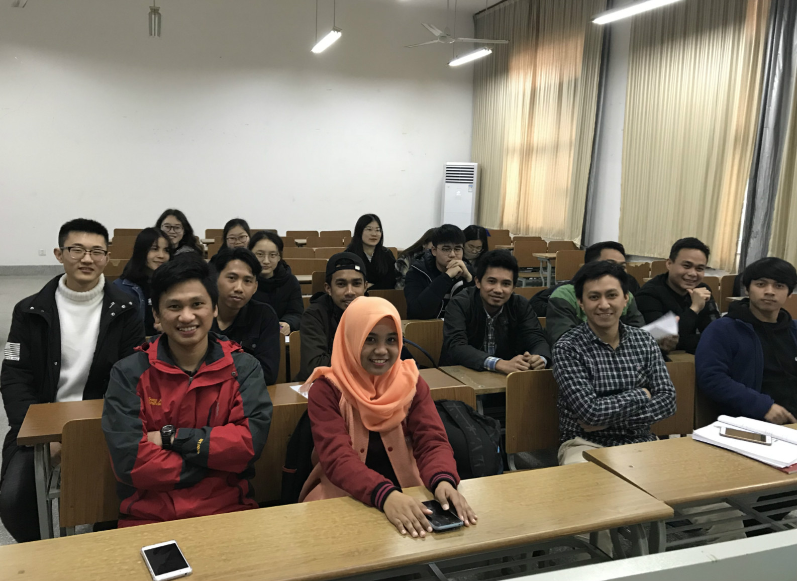 活动共分为三个环节。第一环节由贾程介绍雷锋的生平与事迹。第二环节由印尼员工代表和中国员工代表共同朗诵《致雷锋——原来你一直在这里》,从中使印尼员工了解到雷锋同志乐于助人,珍惜时间,善于钻研的优秀品质。第三环节是语言文化交流。首先由中国员工教印尼员工用中文读诗句,并赏析诗句内涵,使其更加深切地感受到雷锋同志强烈的集体意识和爱国情怀。接着韩国员工和印尼员工各自用他们国家的语言教中国员工读诗句,大家互相交流各自的语言文化。活动结束之际,同学们在孔子像下共同合影留念。