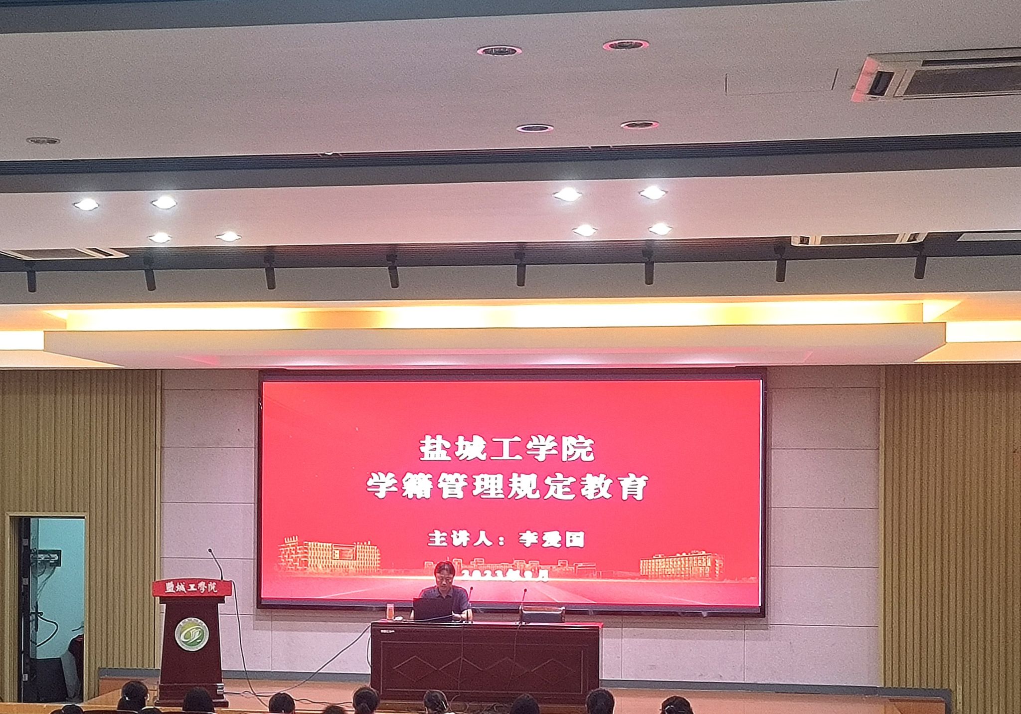 9月12日下午,机械馆报告厅内,william威廉亚洲官方特邀公司教务处副处长李爱国为2023级新生开展“大学第一课”学籍管理规定讲座。公司党总支副书记倪璞主持讲座,新生辅导员徐栋阳和全体新生参加讲座。