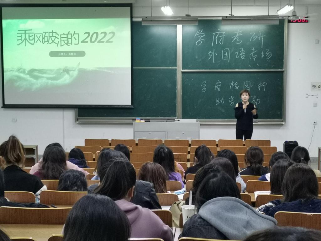 11月17日晚7点,在南校区博学楼D213教室,公司邀请学府考研的吴静茹老师做题为“乘风破浪的2022”的william威廉亚洲官方专场讲座,公司全体大三员工参加。