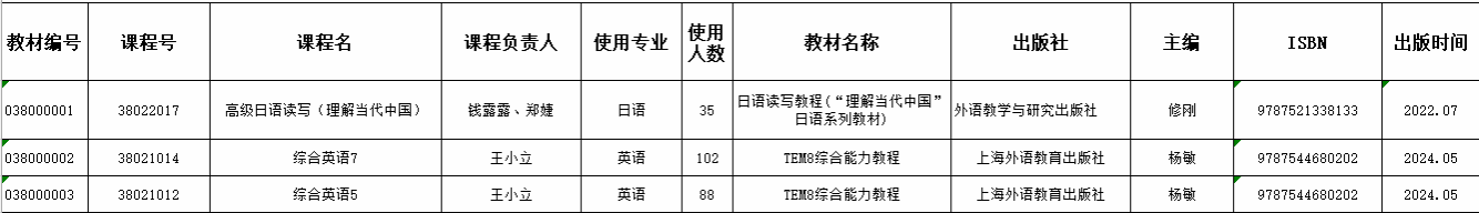 现将通过的新增的教材进行公示,若有异议请在2022年7月10日前与外院教科研办公室联系 (联系人:张老师 电话:8816-8850)