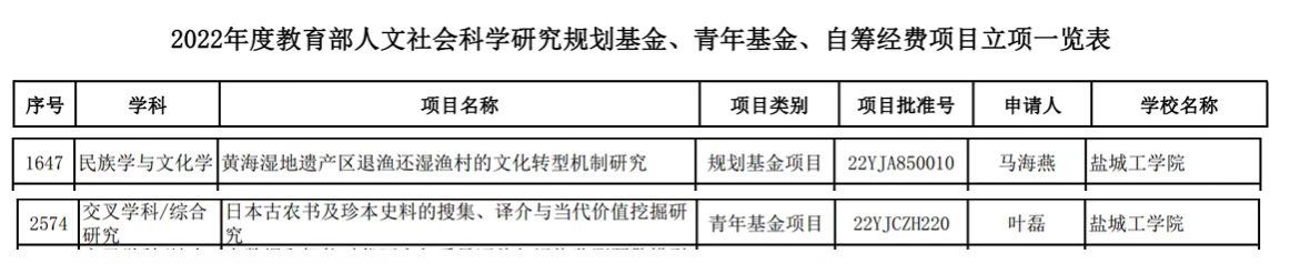 公司叶磊《日本古农书及珍本史料的搜集、译介与当代价值挖掘研究》研究课题获批2022年教育部青年基金项目立项。
